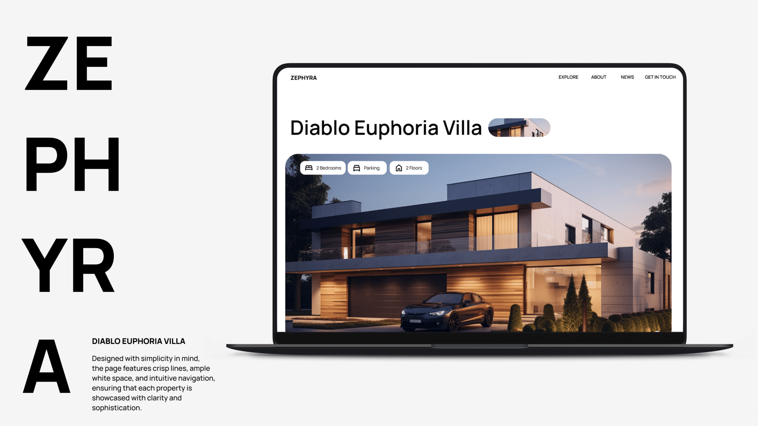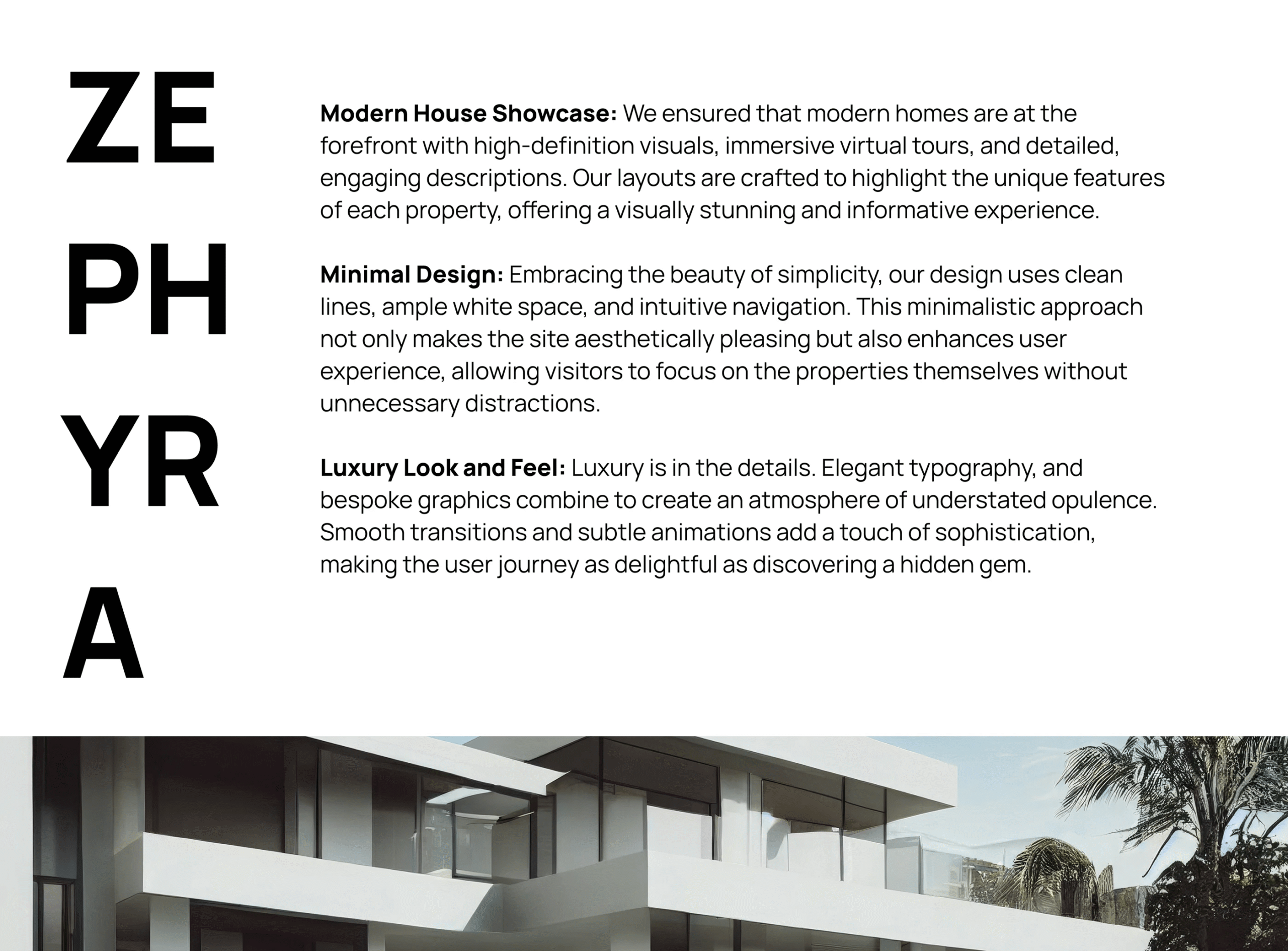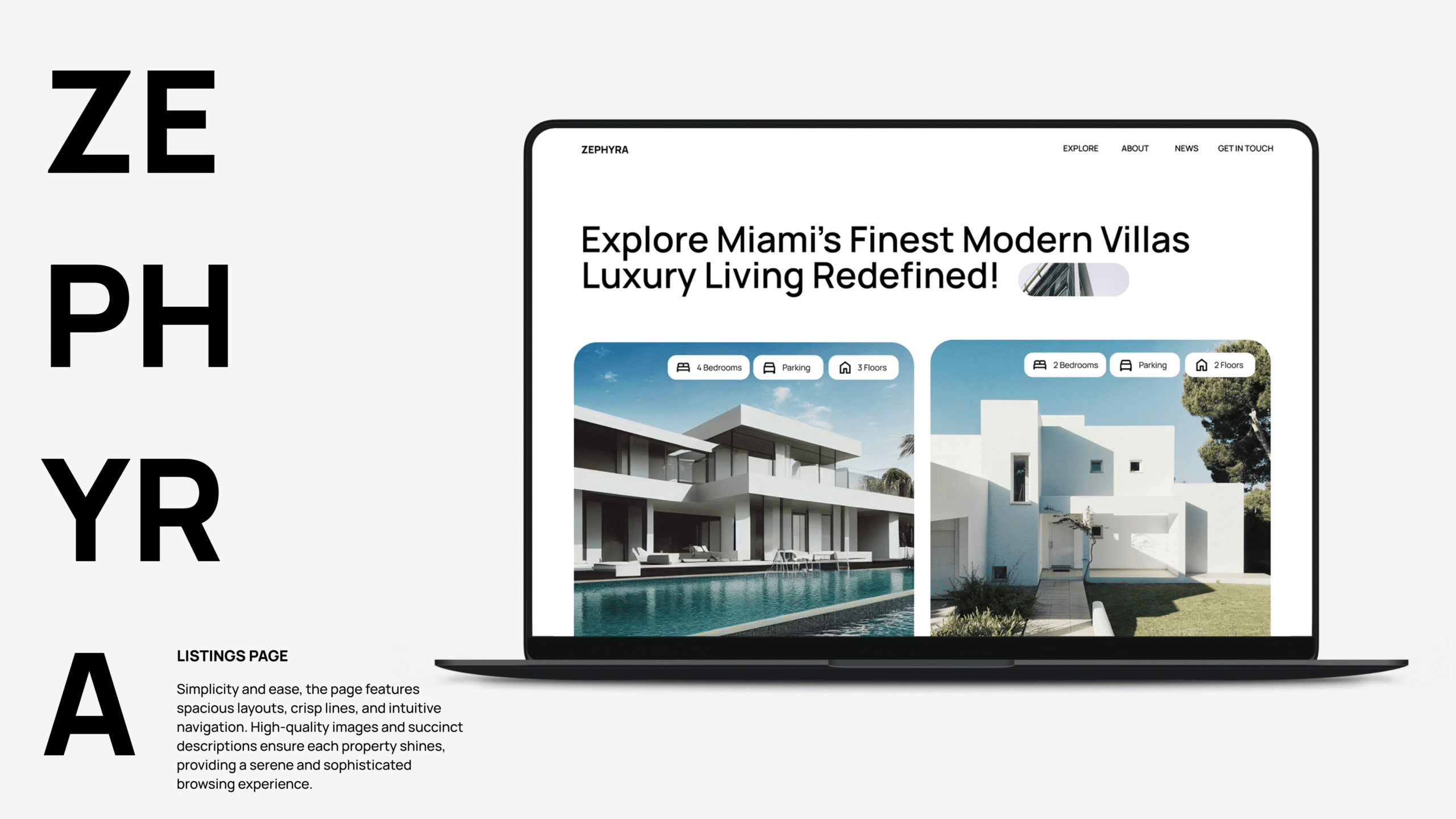 ZEPHYRA is a real estate web design concept crafted to present properties with clarity, balance, and strong visual confidence.